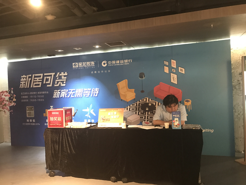 為了向廣大客戶提供高品質的裝修服務,2017年7月29日-7月30日,星藝裝飾攜手建設銀行聯合舉辦“新居可貸,新家無需等待”大型家裝特惠專場活動,百位精英設計師齊聚現場,打造放心好裝修。星藝裝飾將走心的家居設計,優秀的施工質量,豐厚的到場福利簽單優惠帶給消費者。現場更有建行工作人員直接受理家裝業務,讓業主方便快捷解決裝修資金緊缺難題,不用在這烈日炎炎的天氣下東奔西走!