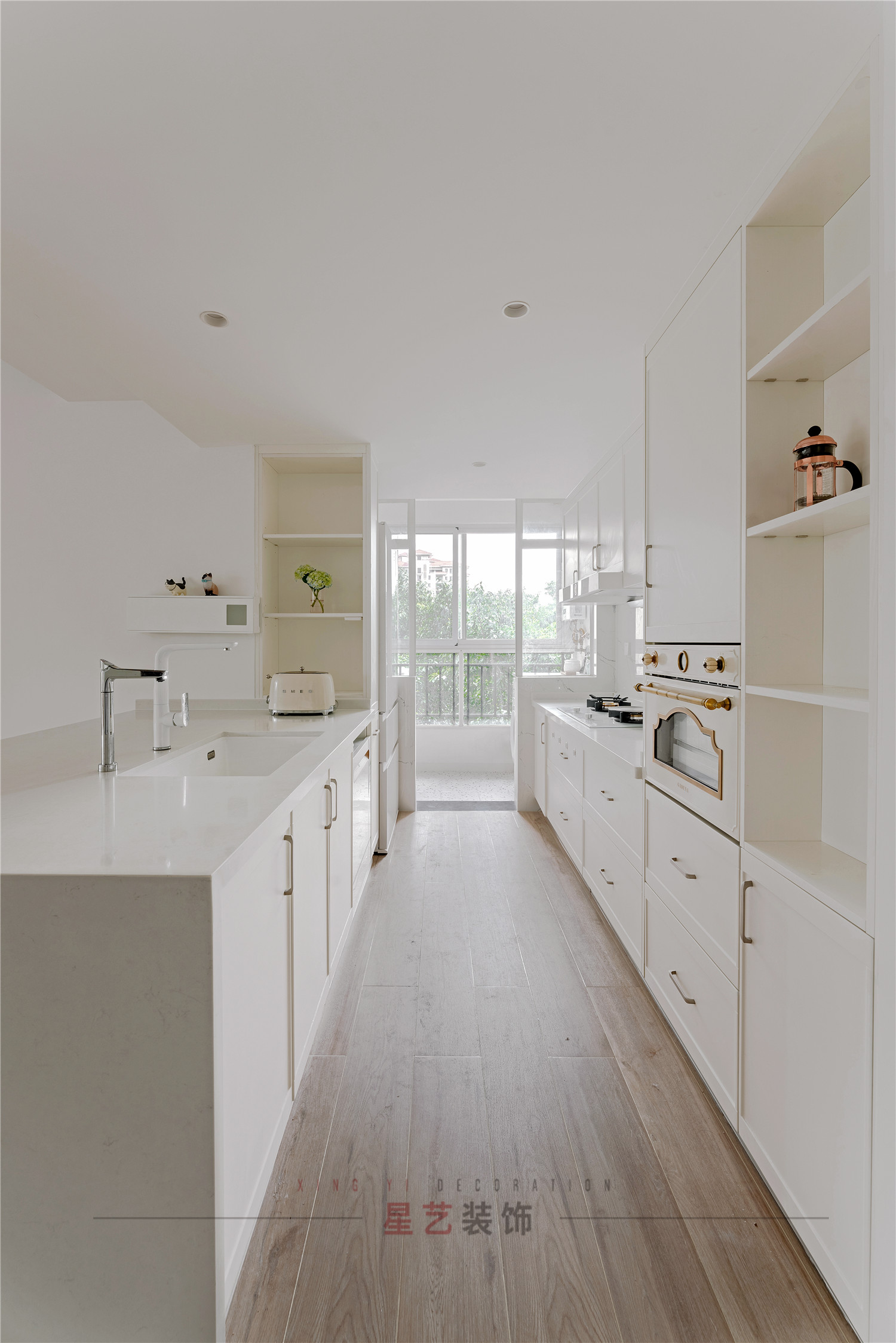 選擇開放式的廚房,植入一個超大導(dǎo)臺讓整個空間更加寬敞,多人使用都不會感覺太擁擠,體驗感極佳。日常一邊做菜的同時也可以跟家人交流,與最親密的人享受柴米油鹽帶來的樂趣。