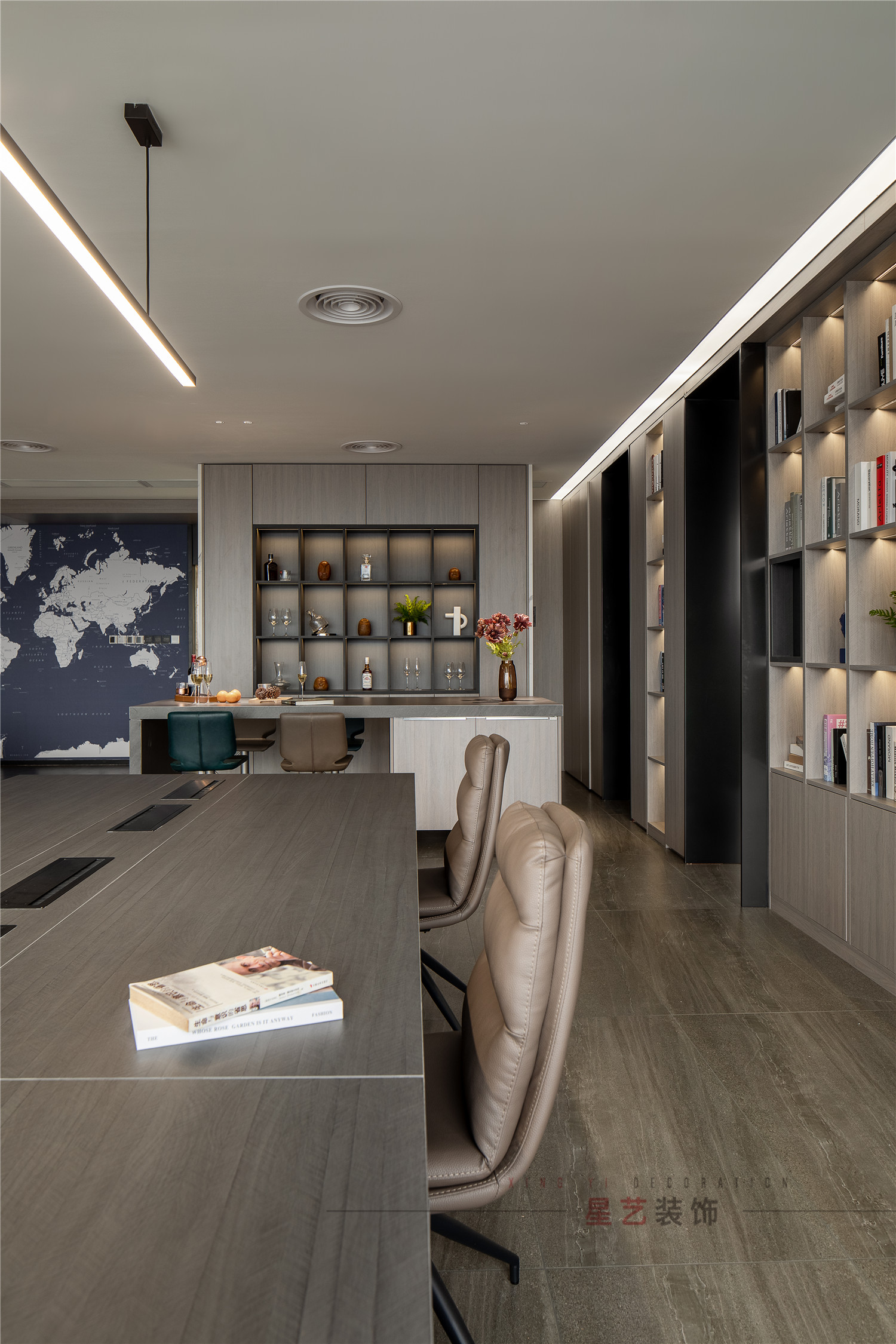 MAVEGA GROUP 是一家船舶經(jīng)紀(jì)為主營(yíng)業(yè)務(wù)的英國(guó)企業(yè),中國(guó)區(qū)負(fù)責(zé)人Tiger希望給與辦公空間一個(gè)符合行業(yè)屬性的定位,時(shí)差原因辦公時(shí)間會(huì)直至深夜,整個(gè)辦公空間對(duì)于員工以及客戶的一個(gè)娛樂(lè)性、舒適性及其重要,辦公空間按照”家”的屬性要求,給予了更多的可能性。